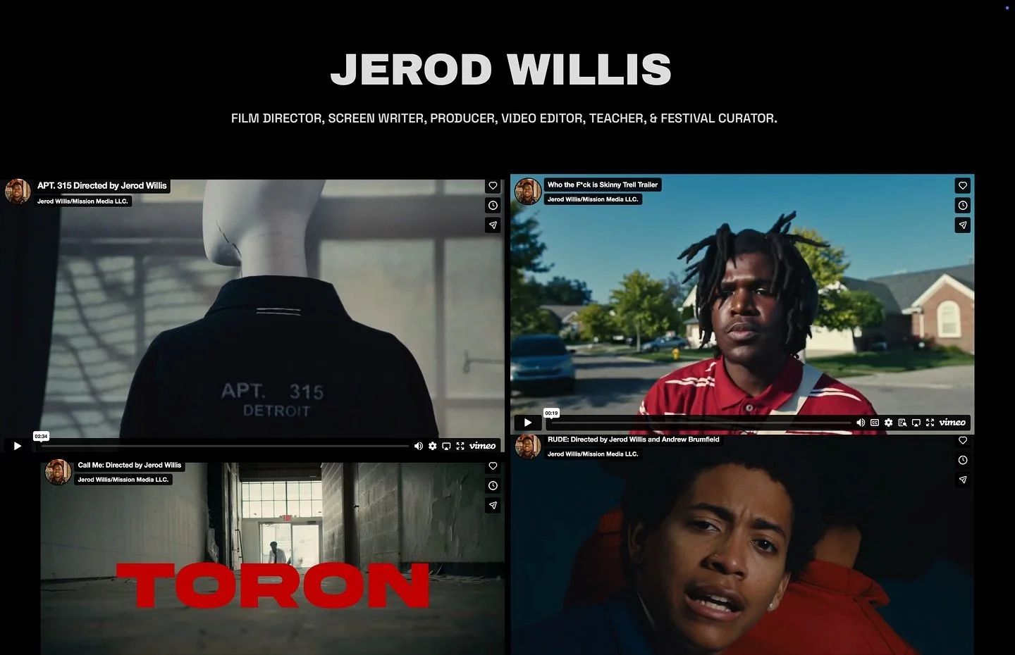 Welcome, my name is Jerod Willis a Detroit-based writer, director, producer, cinematographer, Teacher, Festival CURATOR, Creative director and founder of the media collective Mission Detroit. From a young age I had a deep connection to the medium of film. In my journey of pressing my passion my love has only grown deeper for cinema. I hope that through my work I am able to inspire others. I strive to build long lasting connections not only with my audience But crew members, clients, fellow filmmakers and my students. The fuel that burns my fire is not the recognition that comes with the work but the process of creating something that will last the test of time.